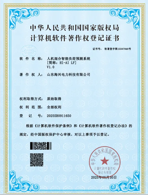 喜報 | 人機混合智能負荷預測系統(HI-AI LF)獲國家軟件著作權,引領電力預測新紀元!更新時間:2025-06-04 │ 點擊數: